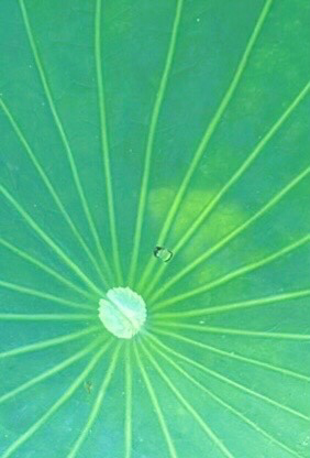 大賀蓮、葉脈に雫、傘の骨